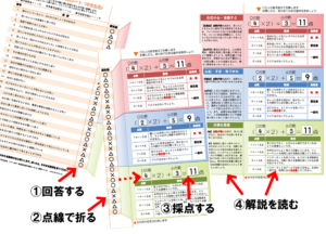 この診断シートでは、大まかに「加害リスク」「被害リスク」「冷静な態度」の3点で危険度を診断します。なお、ここでいう危険度とは、問題を起こしやすい(あるいは抱えやすい)傾向を測ることを意味しています。診断の結果は本人の性格や日常生活を否定するものではなく、あくまでネット利用時の心理傾向を見るためのバロメーターとして考えください。